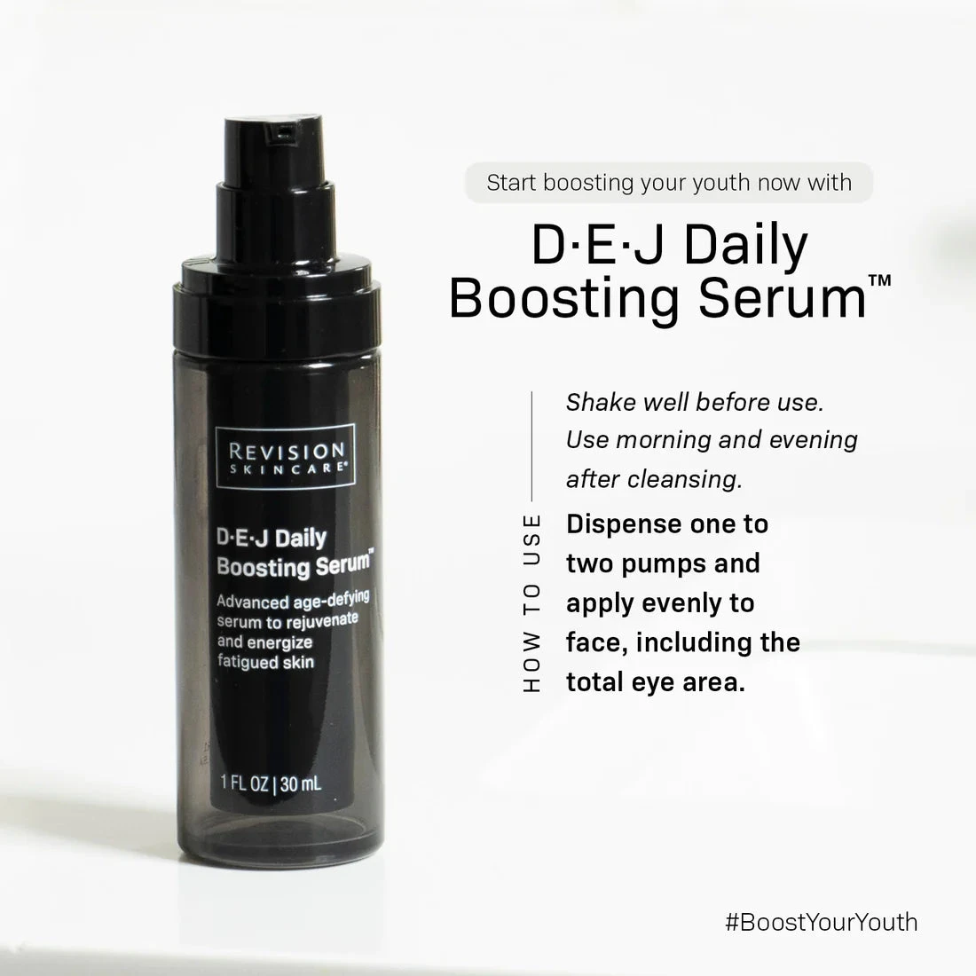 D·E·J Daily Boosting Serum™ is a powerhouse serum formulated with patent-pending Sunflower Sprout Extract Technology that has been clinically proven to impact the visible effects of glycation on skin. In addition to Sunflower Sprout Extract, D·E·J Daily Boosting Serum™ contains a robust antioxidant blend, Acetyl Hexapeptide-1, and other efficacious ingredients to: